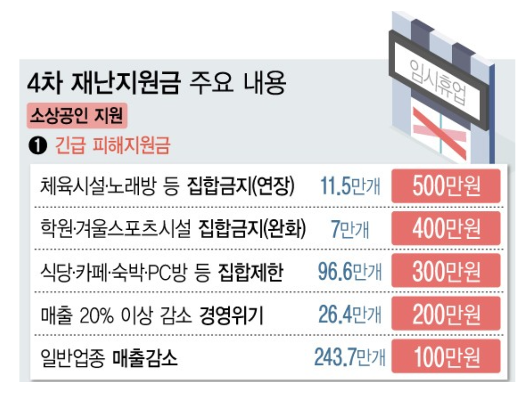 5차 재난지원금 전국민지급 및 손실보상 검토. 4차 재난지원금 신청기간 대상 홈페이지 코로나 소상공인4차지원금 소상공인 버팀목자금 플러스 신청. 5차 재난지원금 2021년 6월 25일 당정합의 정부와 더불어민주당은 6월 25일 국회에서 '2021년 하반기 경제정책방향 당정 회의'를. 4차 재난지원금 코로나가 길어짐에 따라 정부에서는 이에 따른 피해를 보고 있는 소상공인과 특수 고용노동자 등의 고용 취약계층에게 4차 재난지원금 신청을 받기로 결정했습니다. 5차 재난지원금 신청 대상 조회 코로나 5차 재난지원금 신청방법 전국민 대상자 기초수급자 5차 재난지원금.